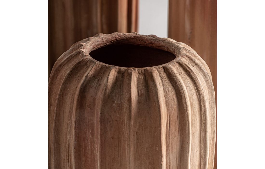 Vaso estilo contemporâneo feito em argila na cor castanho claro