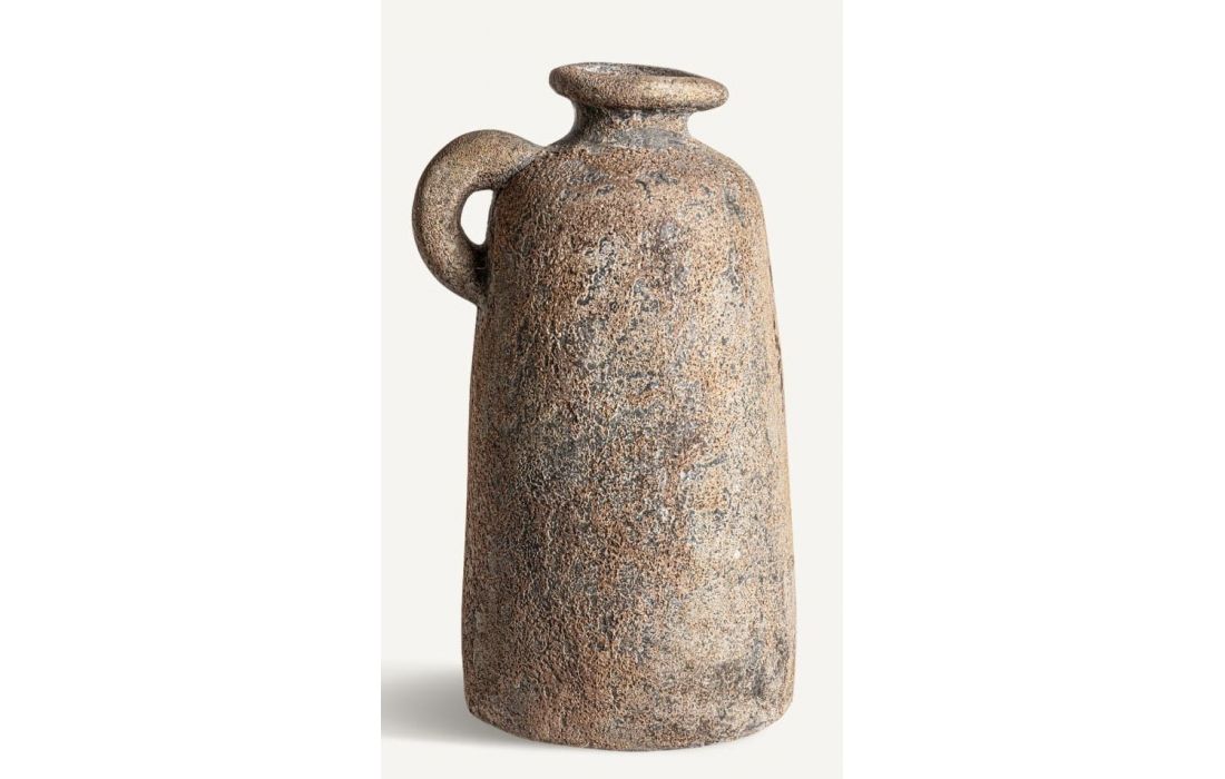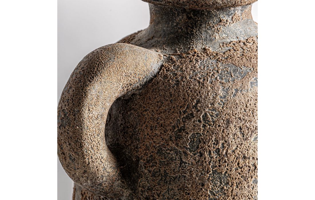 Vaso estilo contemporâneo feito em argila na cor castanho claroDimensões em cmGrande: D 19 A 38Médio: D 17 A 31Pequeno: D 14 A 22 Prazo de Entrega10 a 20 dias
