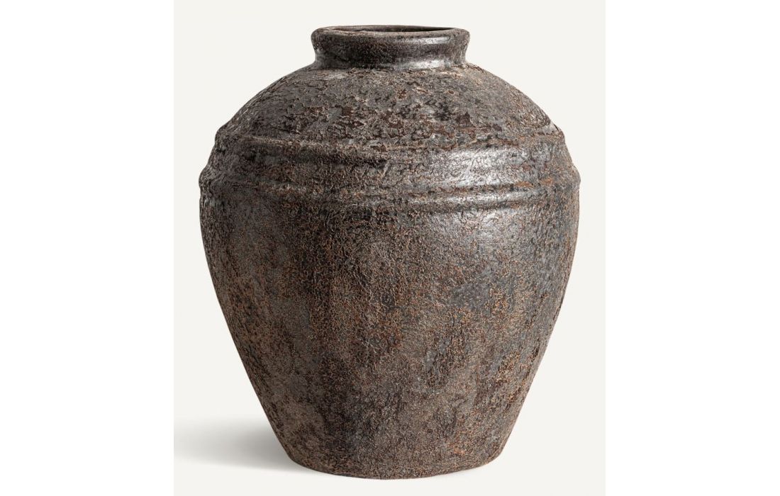 Vaso estilo contemporâneo feito em argila na cor castanho claroDimensões em cmGrande: D 19 A 38Médio: D 17 A 31Pequeno: D 14 A 22 Prazo de Entrega10 a 20 dias