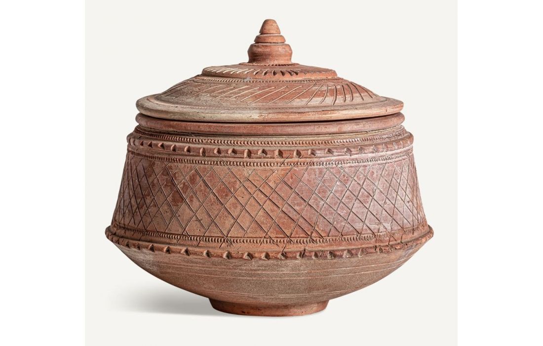 Vaso estilo clássico feito em terracota na cor castanho claro
